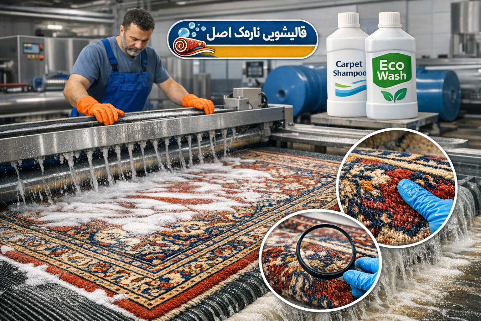 شستشوی اصولی قالی با دستگاههای پیشرفته و مواد استاندارد، تضمینکننده سلامت و زیبایی فرش شماست.